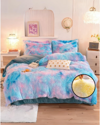 Peluş Çift Renk Nevresim Takımı Çift Kişilik - Gökkuşağı